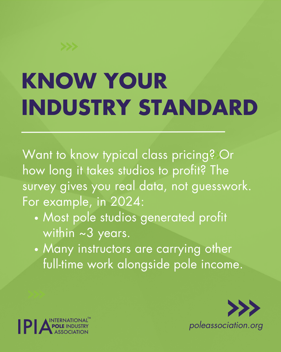 The International Pole Industry Association (IPIA) is a trade association that supports the pole industry with business resources including education and discounts. Colleen was about to release her second Financial Survey and knew the information could be a bit dry. Creating eye-catching visuals for the data has increased her following and member signups for the association. We also introduced reels into the posting schedule to make use of all the webinar content she has available to members.